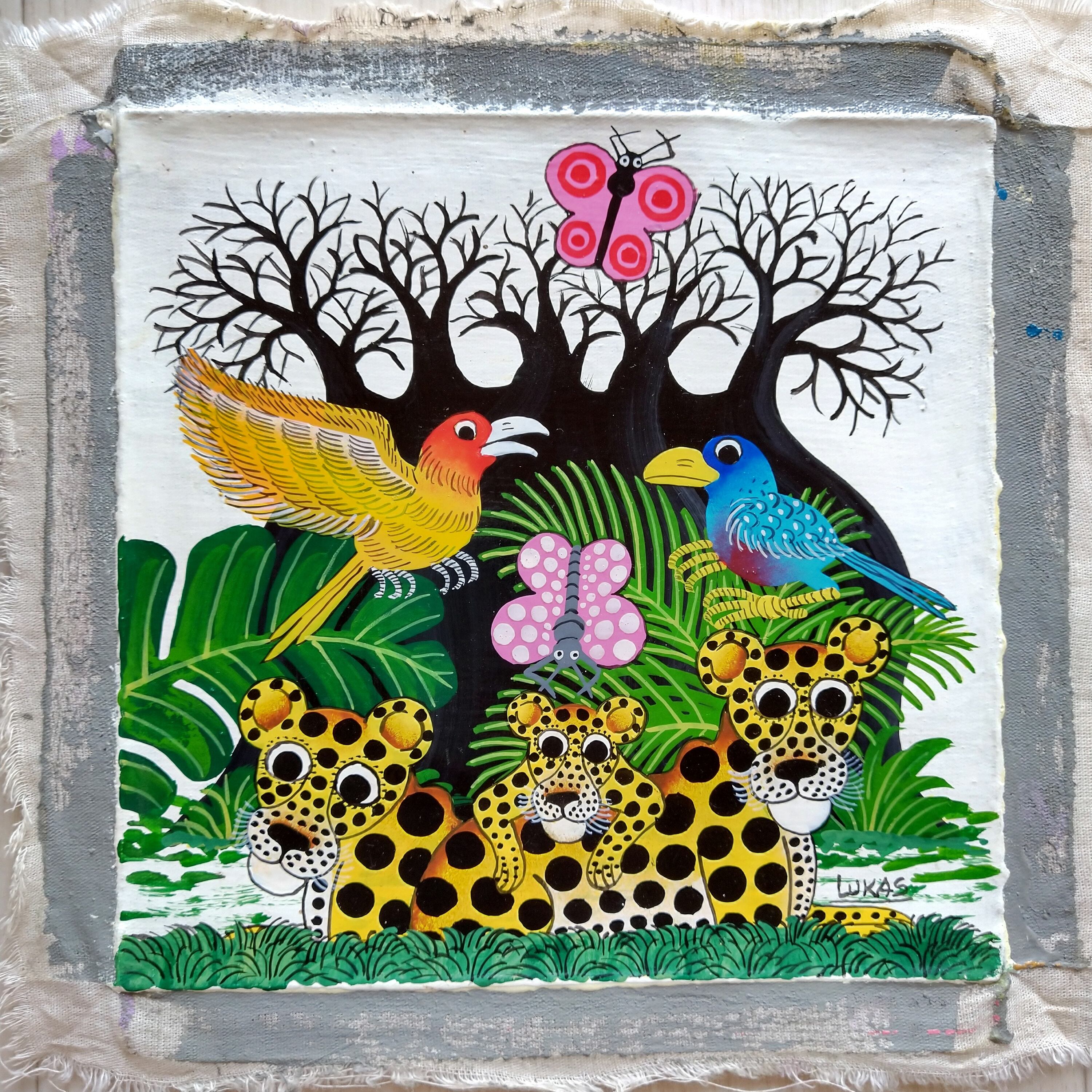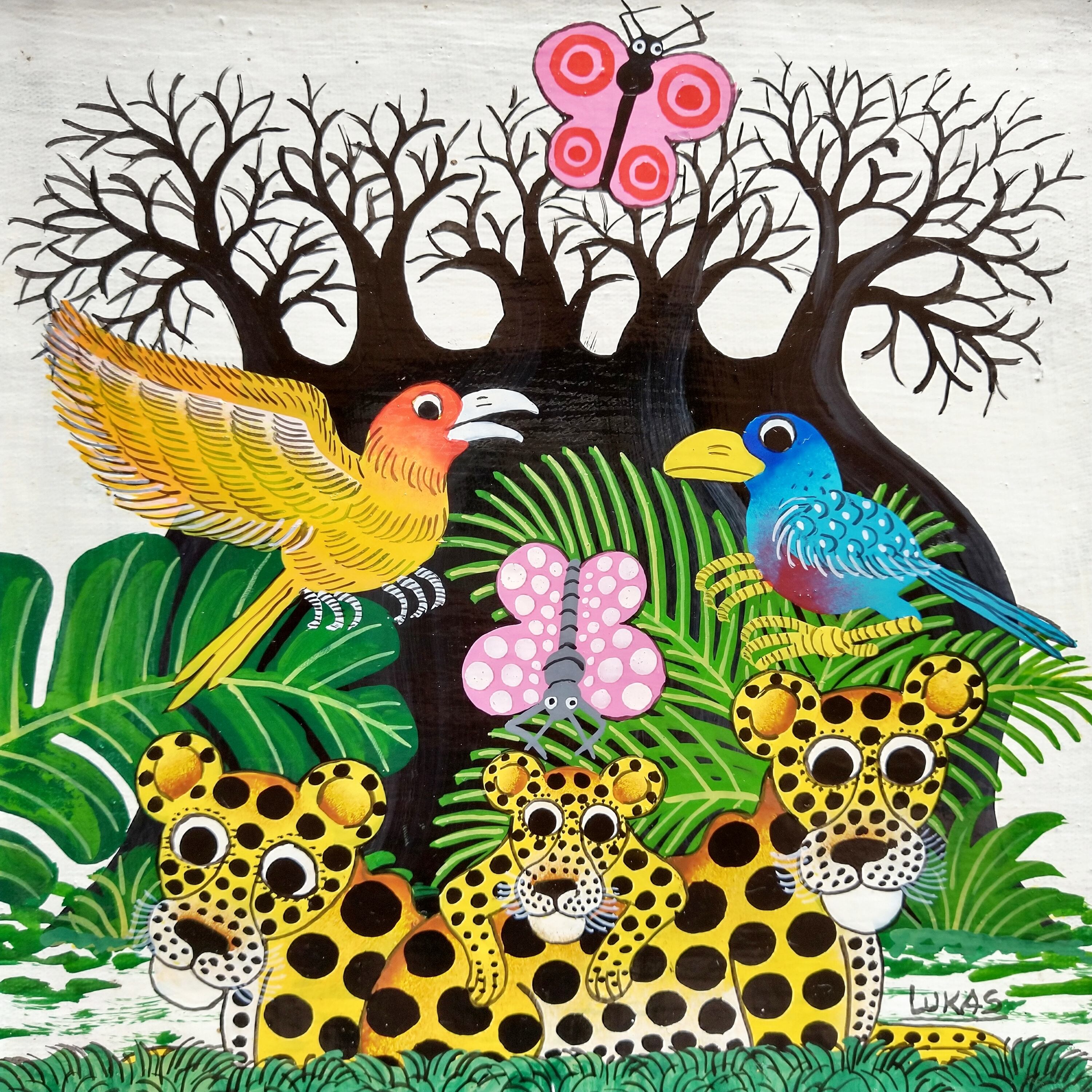 東アフリカ、タンザニアのポップアートです。主にアフリカの動物や植物、人々や風景、精霊などがモチーフとなり、エナメルペンキで描かれています。名前は創始者のエドワード・サイディ・ティンガティンガの名に因んでいます。
