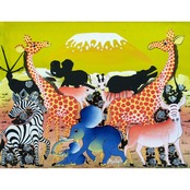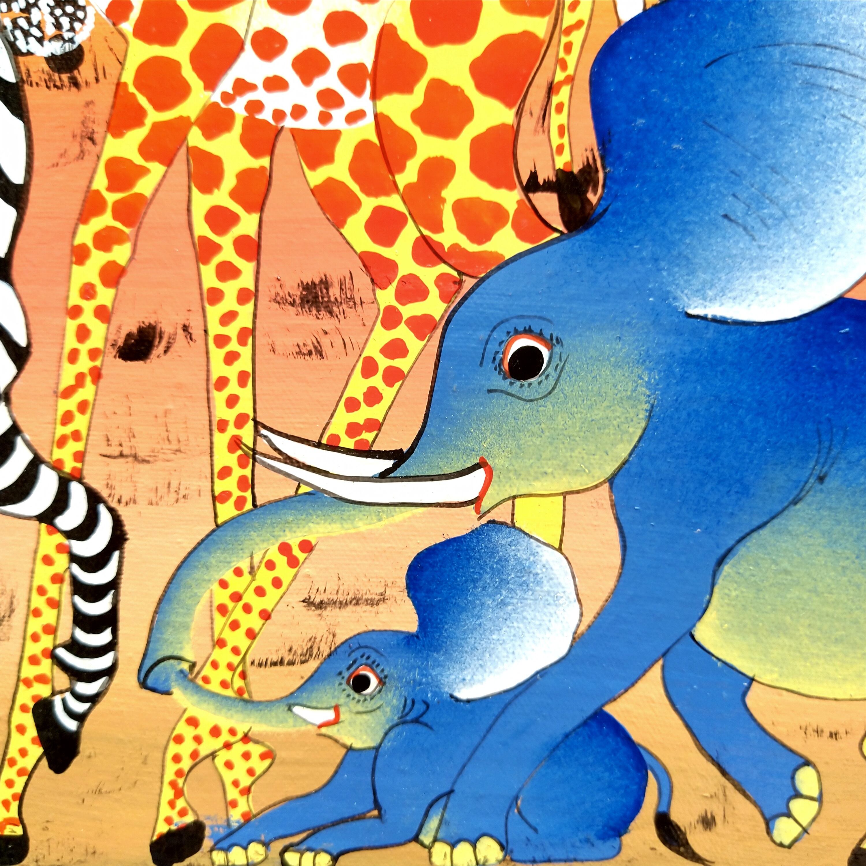 ■アーティスト : ムスターファ(サバンナに集う愛らしい動物たちを描くのが得意なアーティスト。ゾウの耳が丸く立っているのが特徴です。)