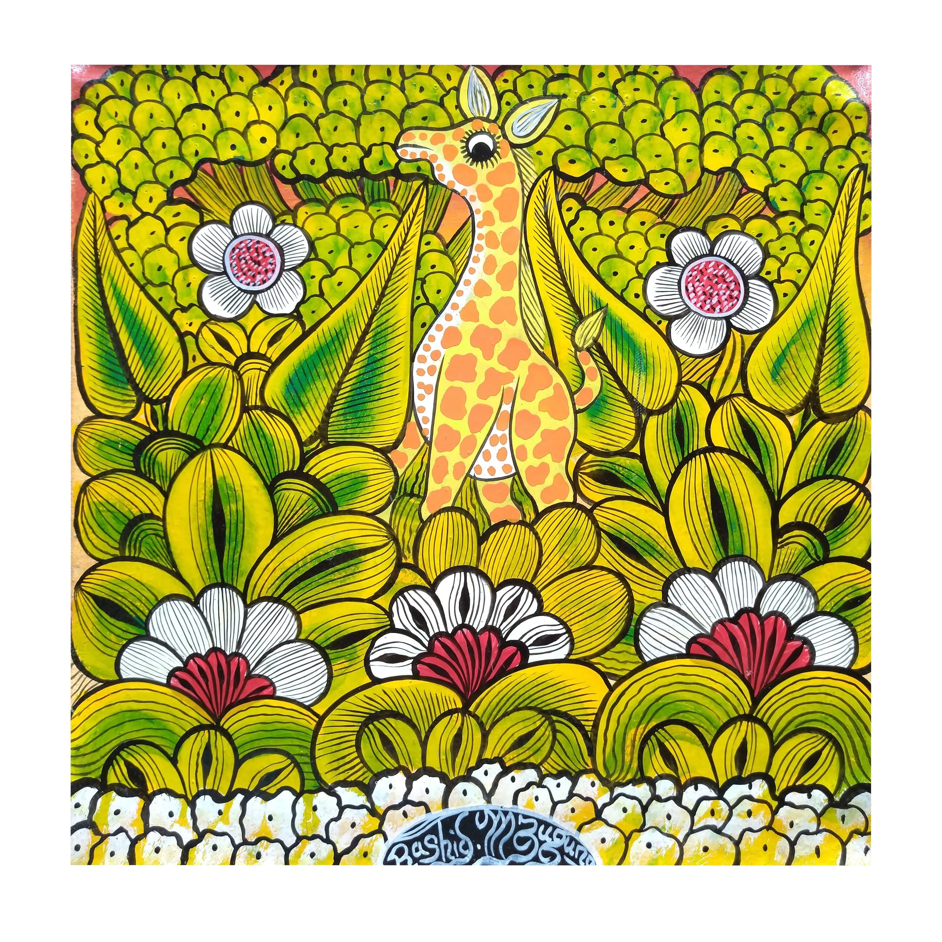 『 Twiga in jungle 』 Medium-Tingatinga by Rashid Mzuguno 34.5*34.5cm
