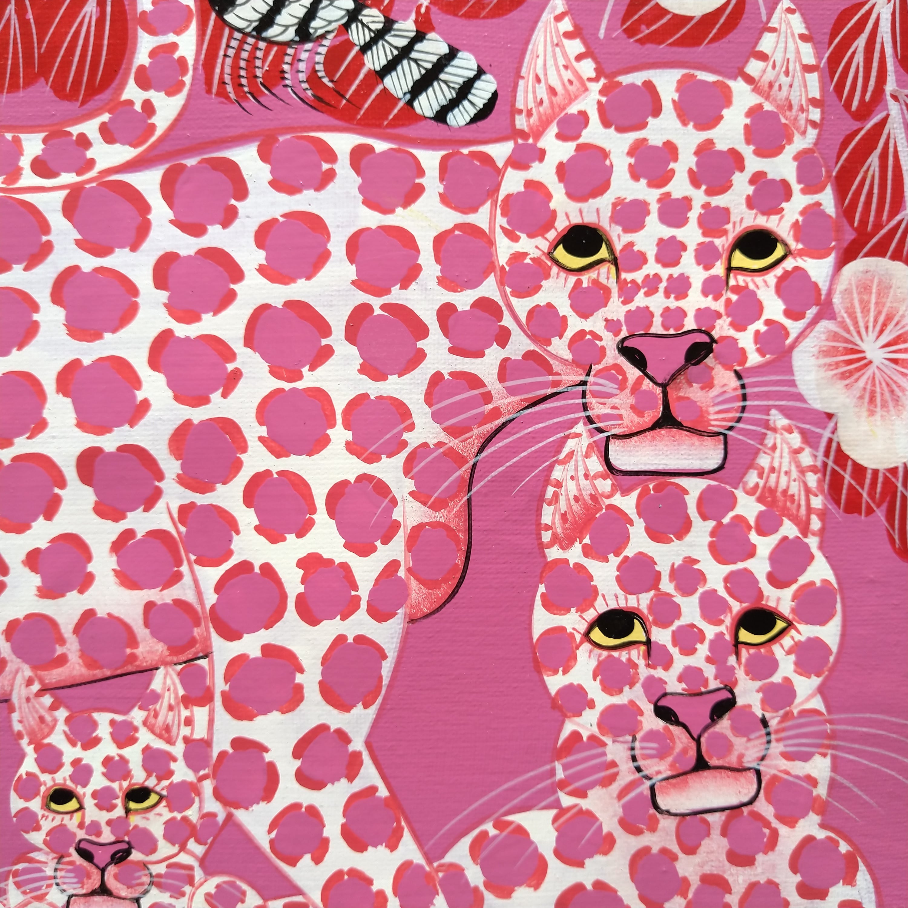 ※サインなし『 Pink Leopard family 5 』Medium-Tingatinga by Zuberi 30*36cm