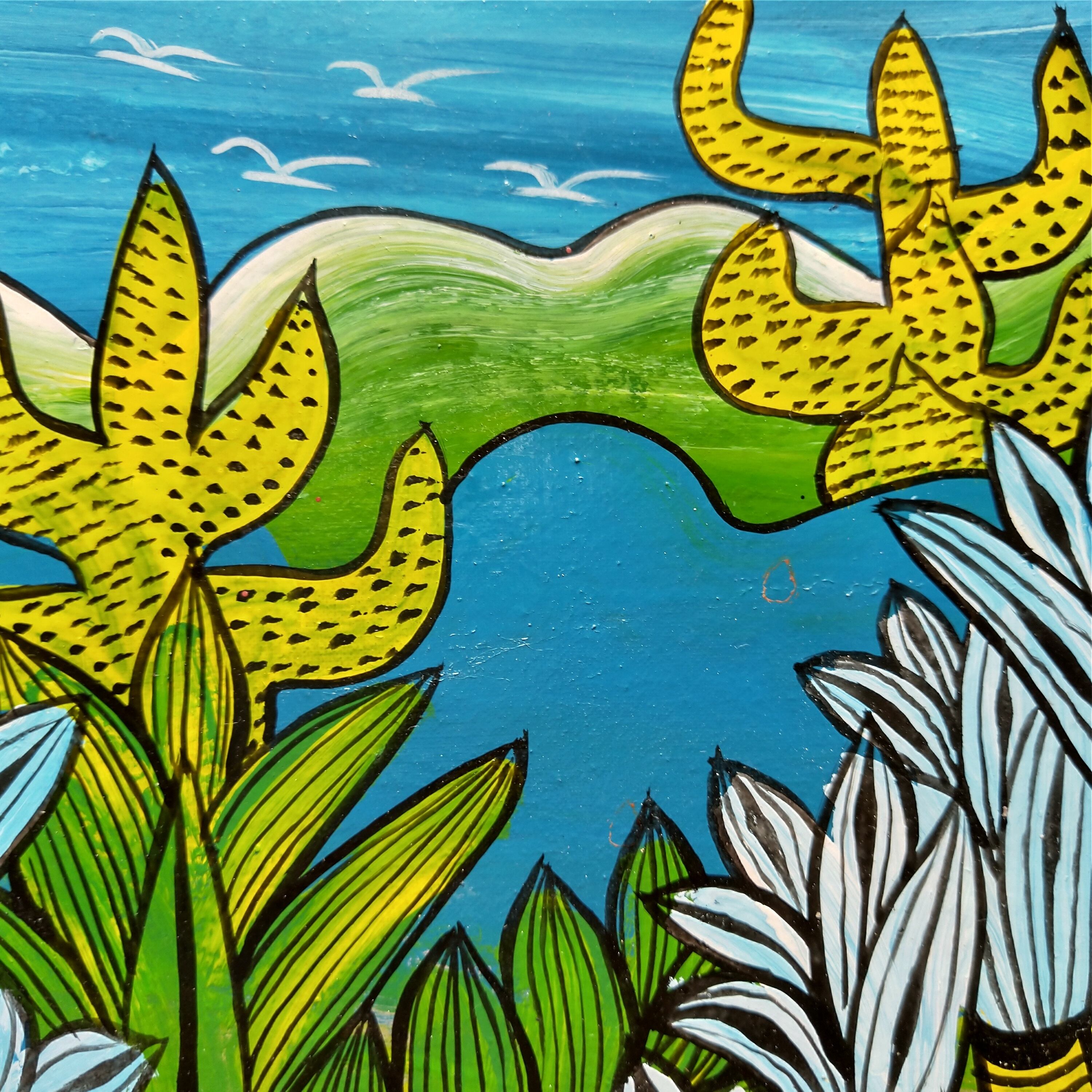 ※ なるべく状態の良いものを仕入れていますが、色ムラ、ペンキの跳ね、ひび割れやしわなどがある場合がございます。赤道直下の太陽の下で創作活動に励む作家たちに思いを馳せて、味わいとして鑑賞していただけると幸いです。