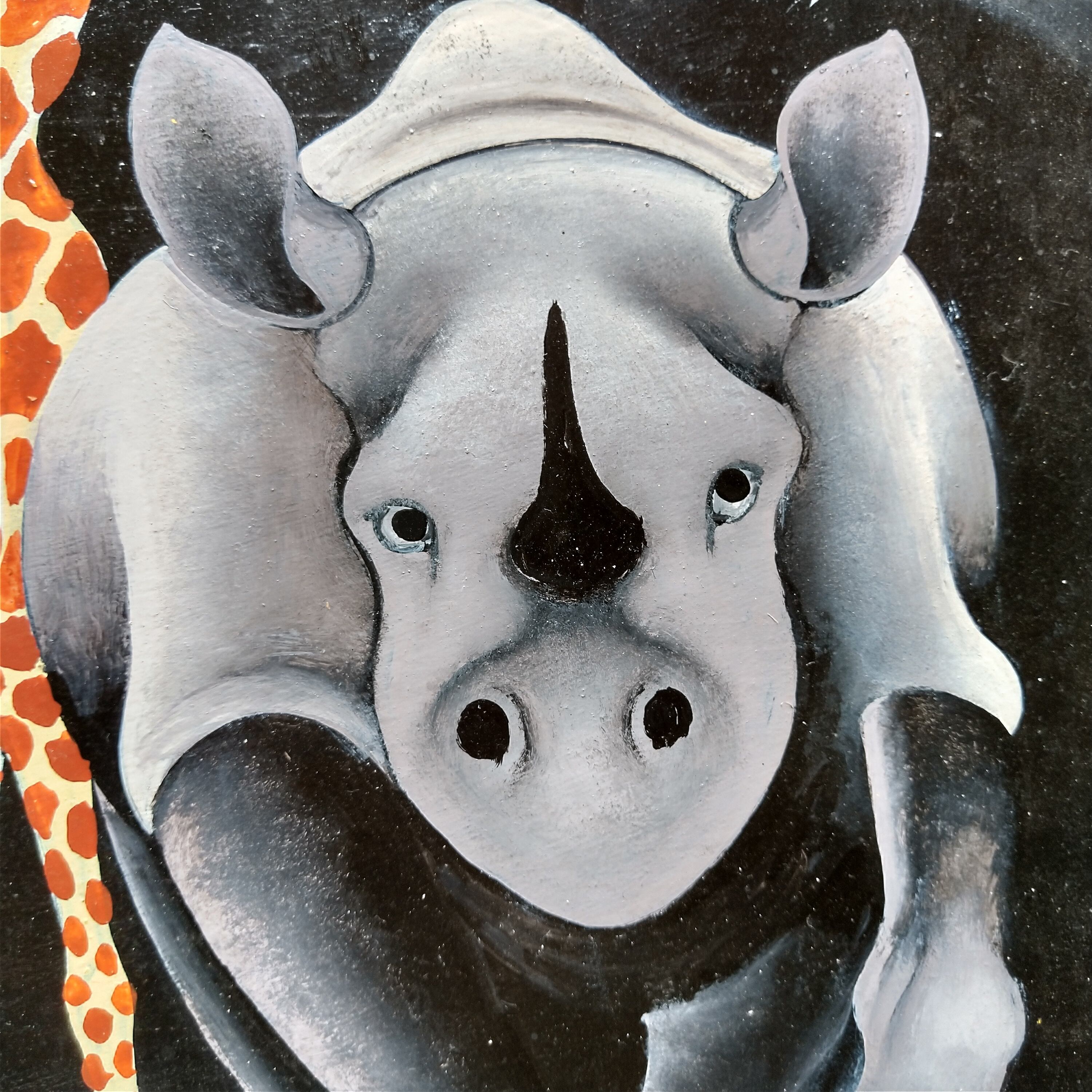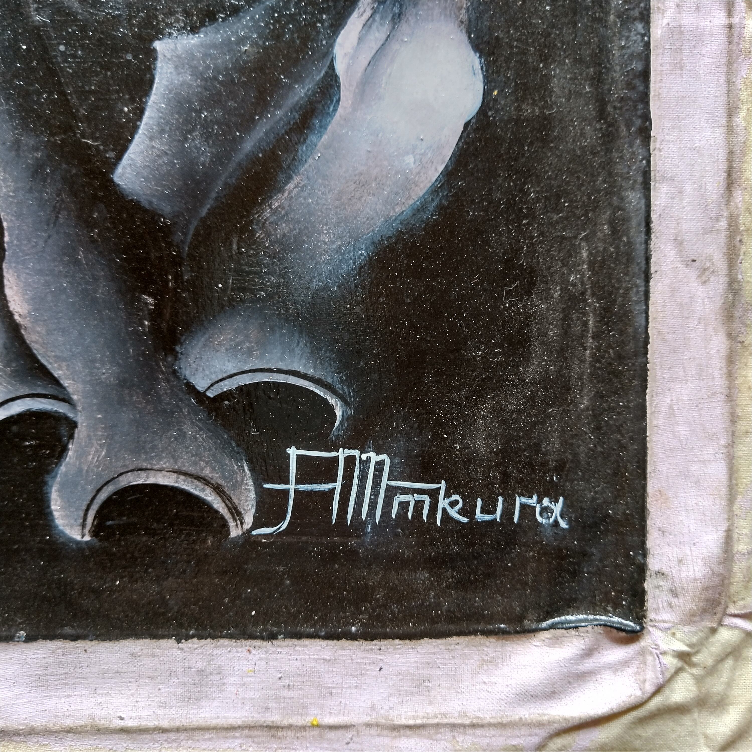 ■アーティスト : ムクラ(Abdul Amonde Mkura 欧州などでも評価されるアーティスト。重量感のあるオリジナリティあふれる動物画が得意。)