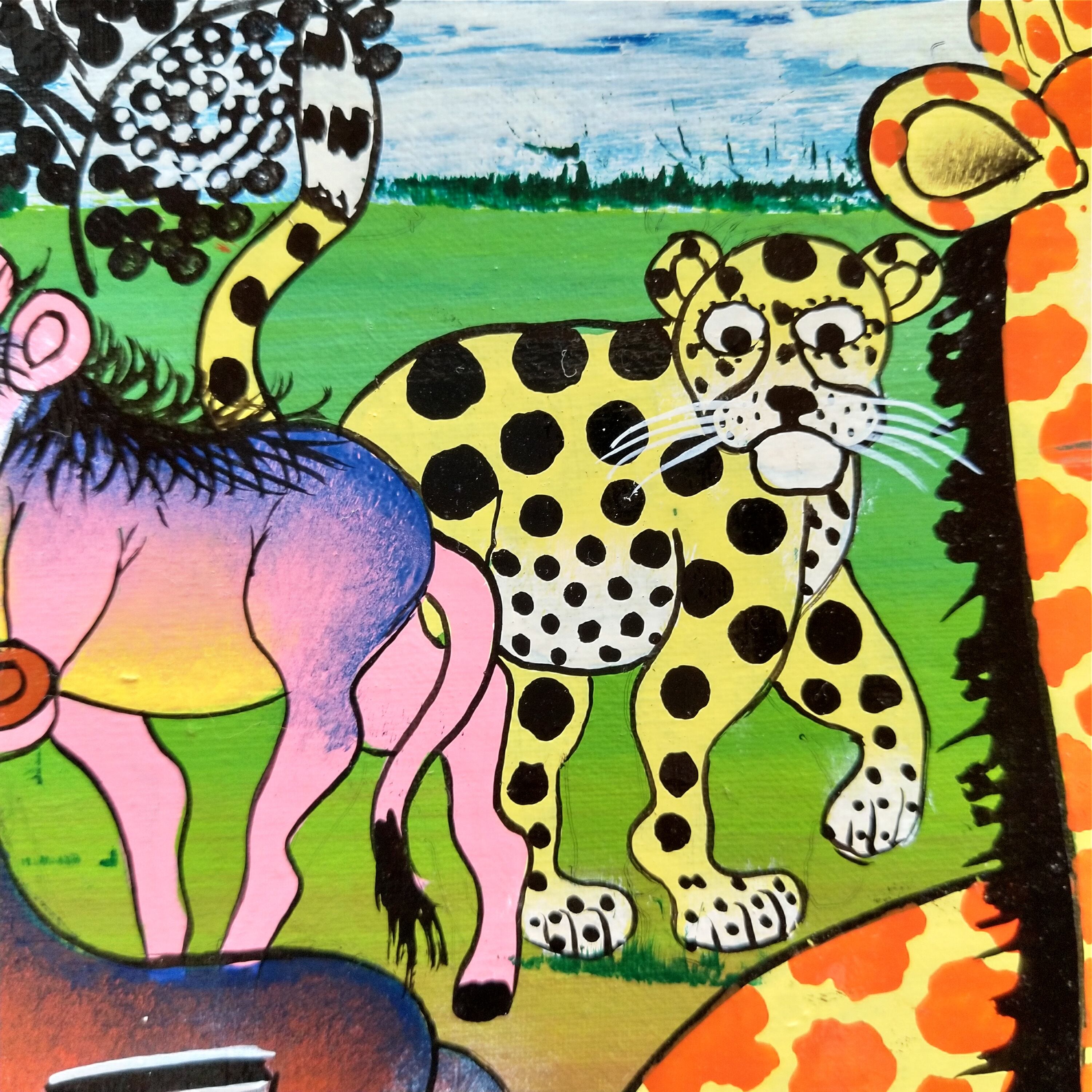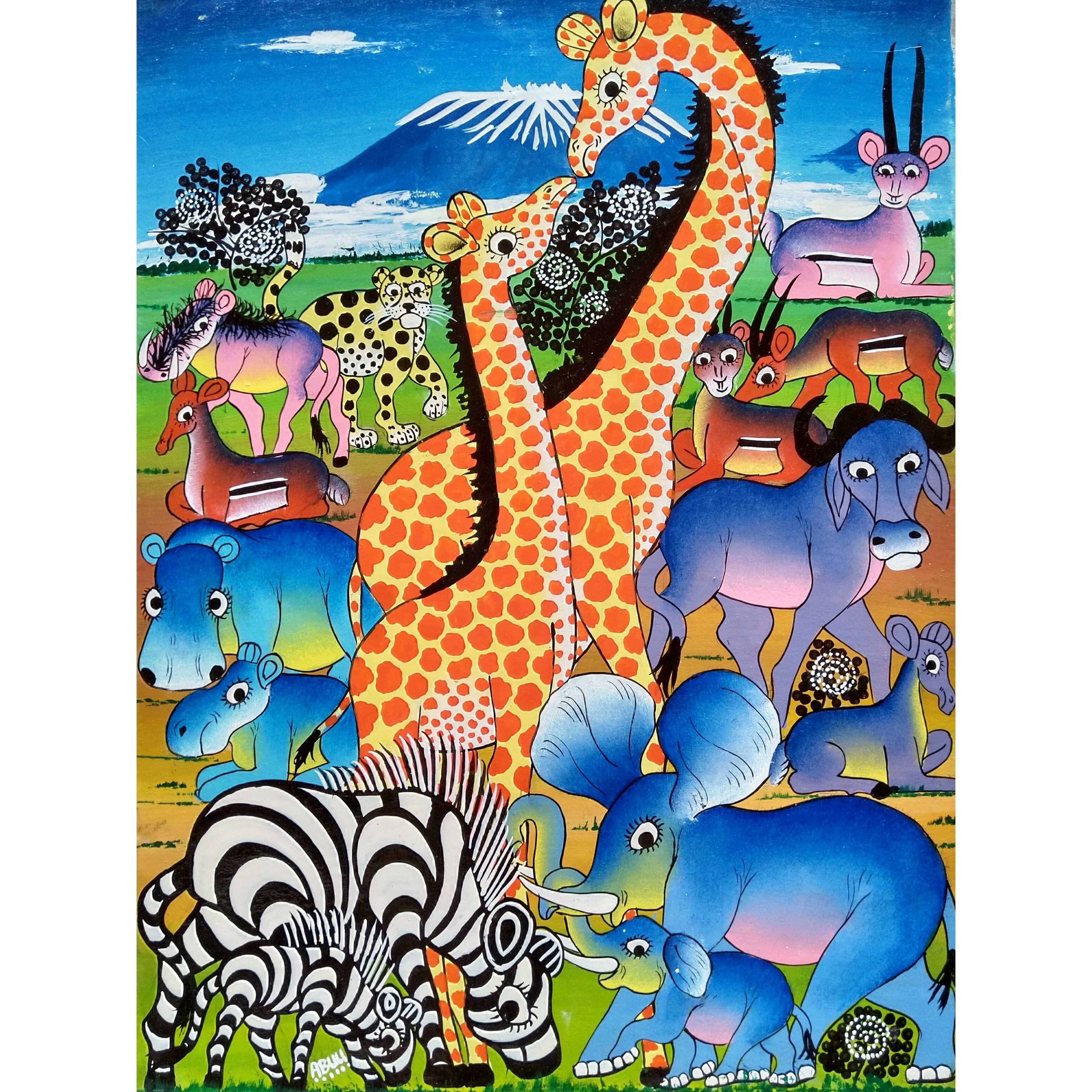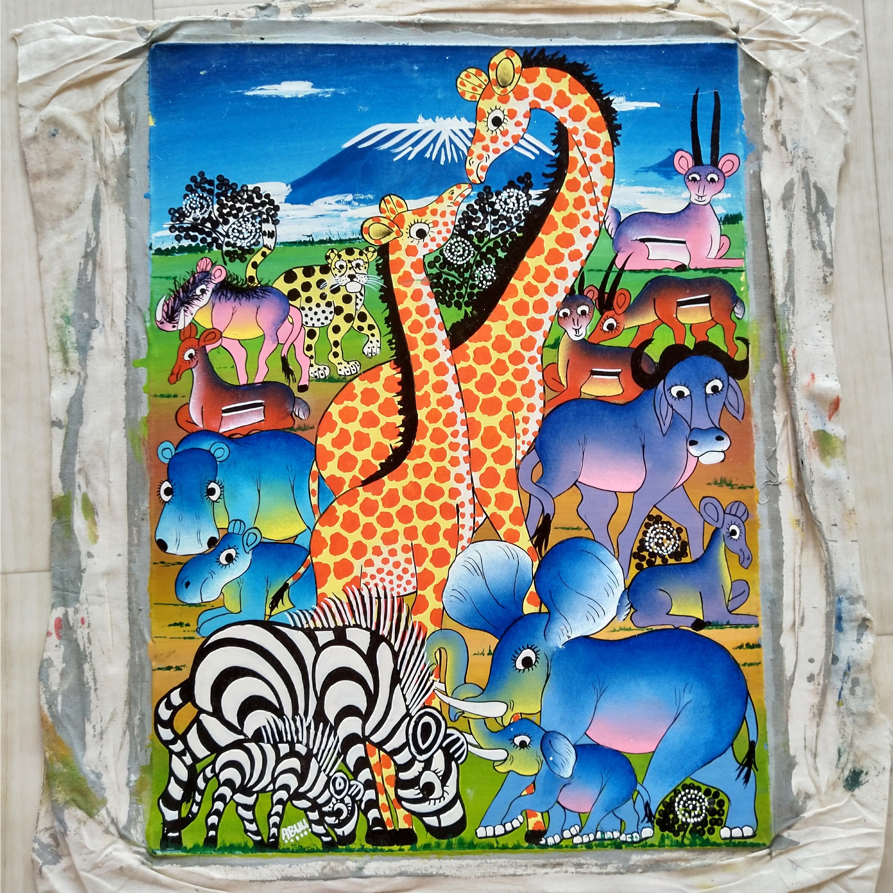 『 15 animals at Kilimanjaro 3 』Meidium-Tingatinga by Abuu 40*30cm