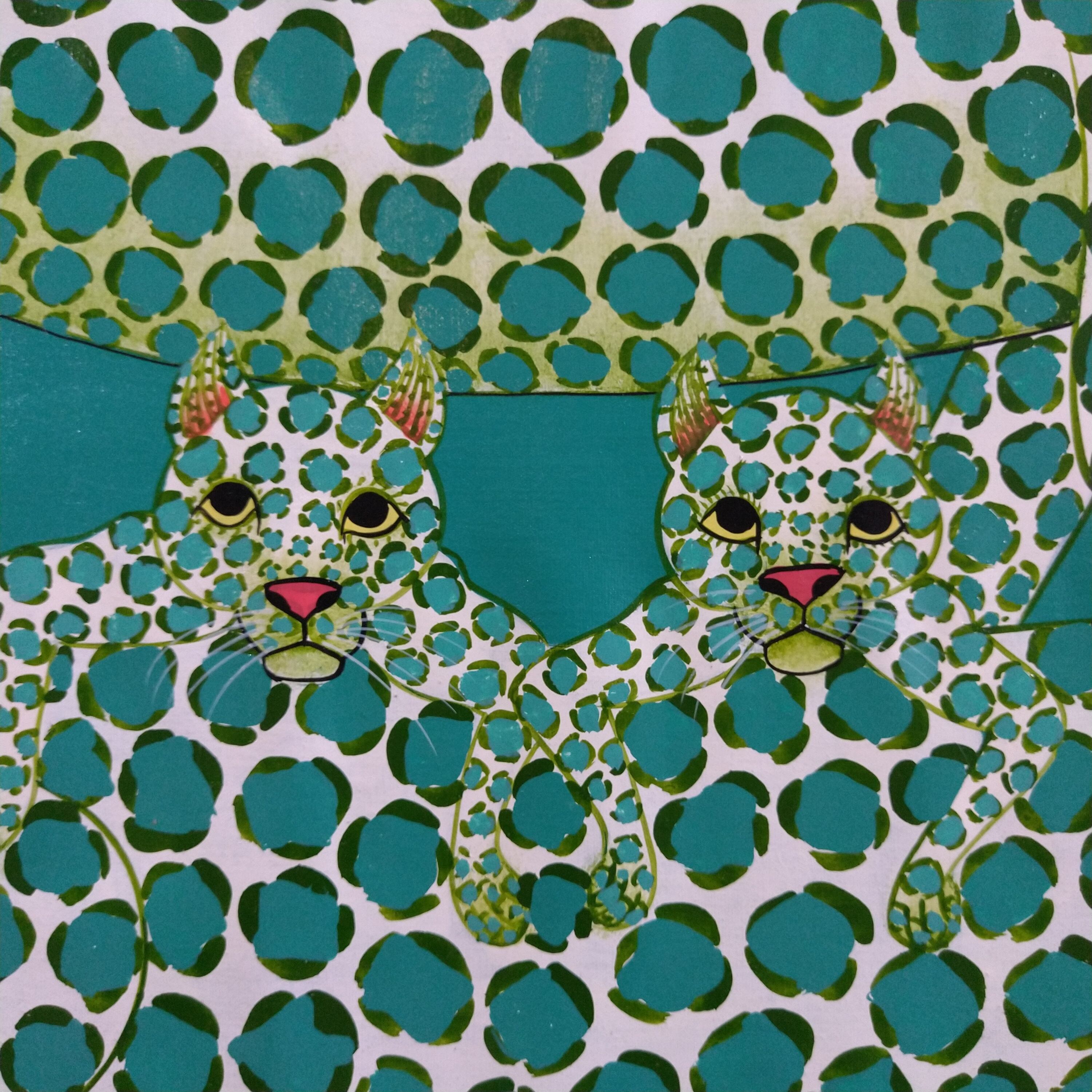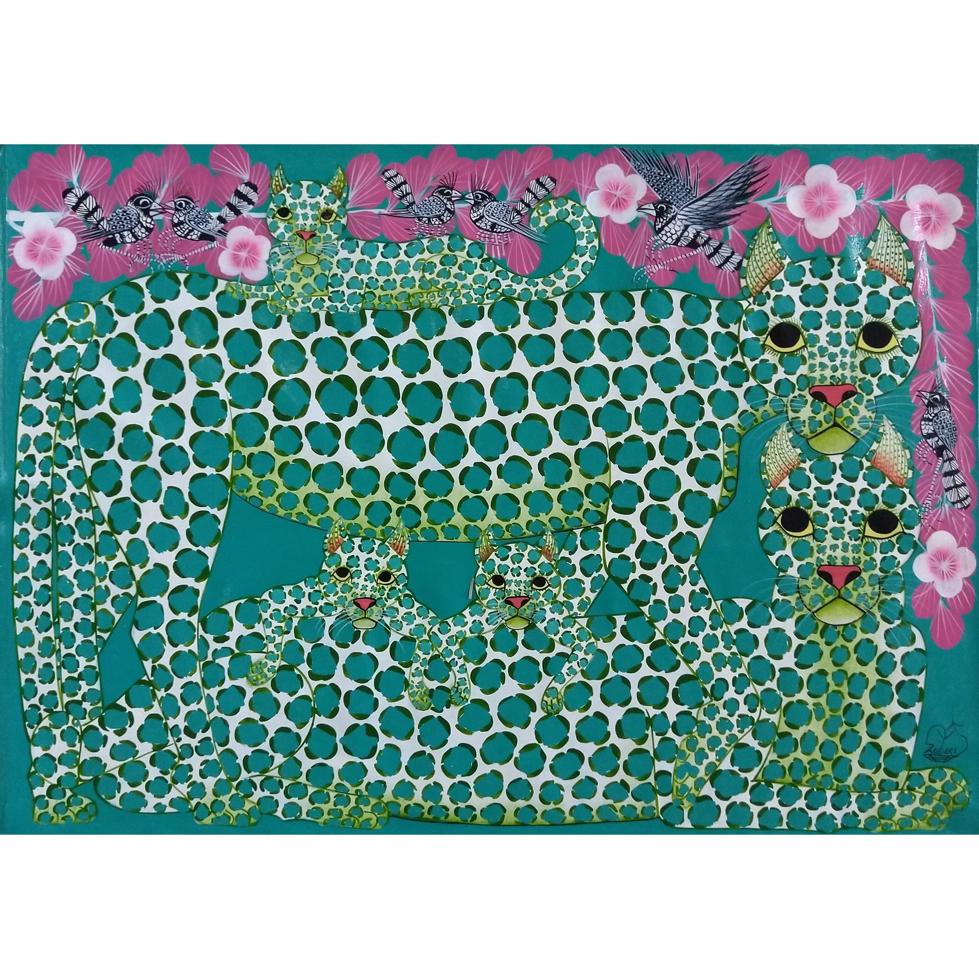 ★専用商品③『 Green Leopard family 』Big-Tingatinga by Zuberi 50*70cm