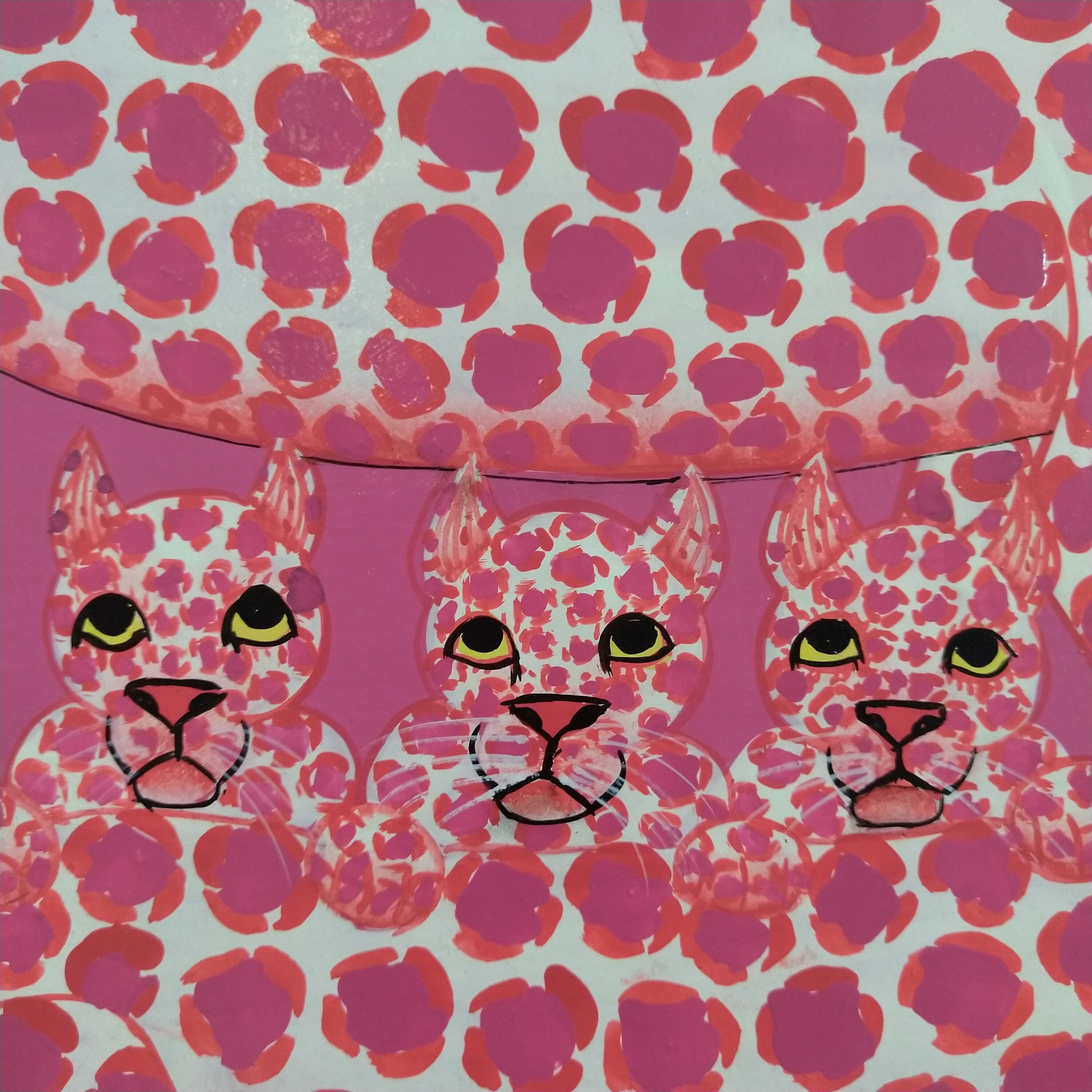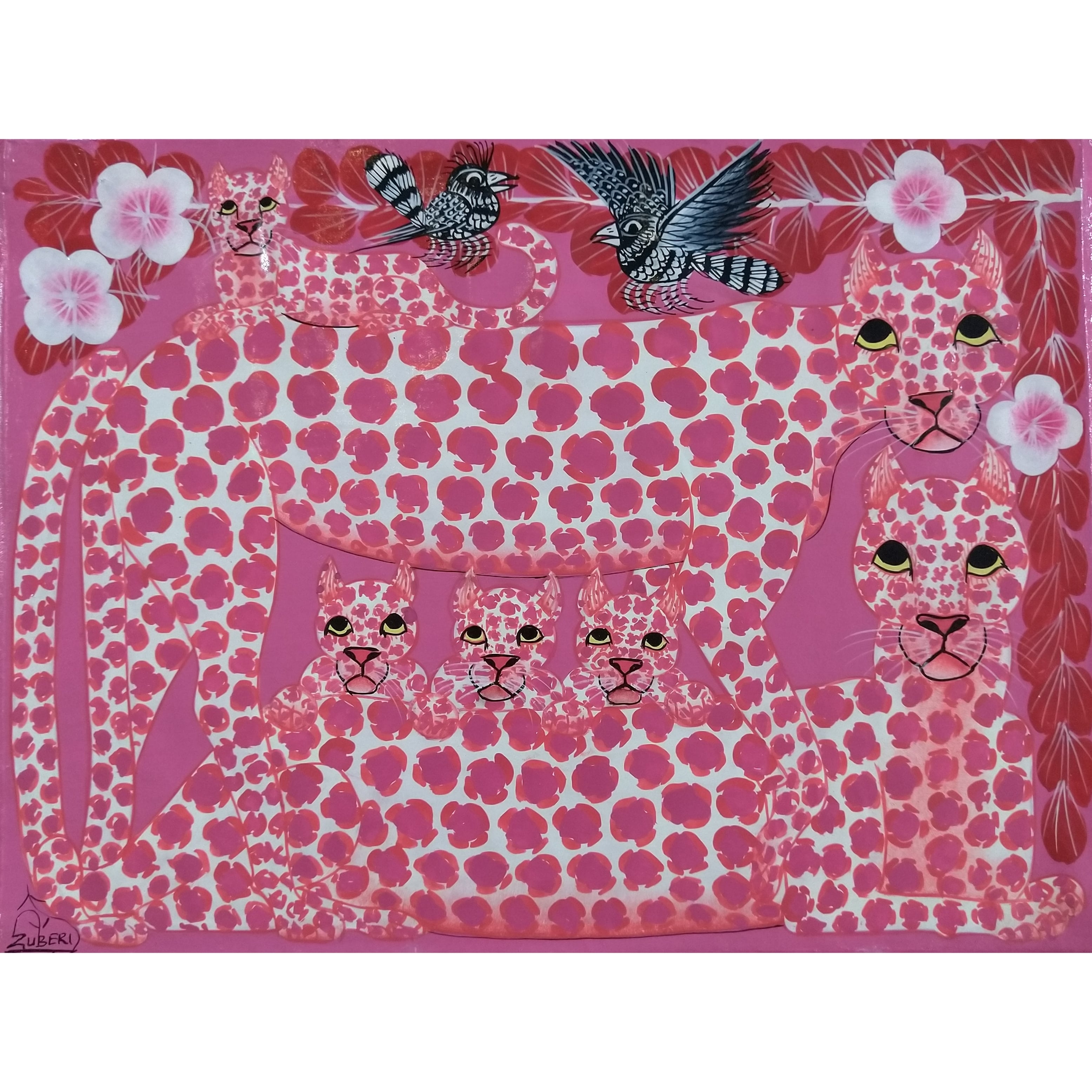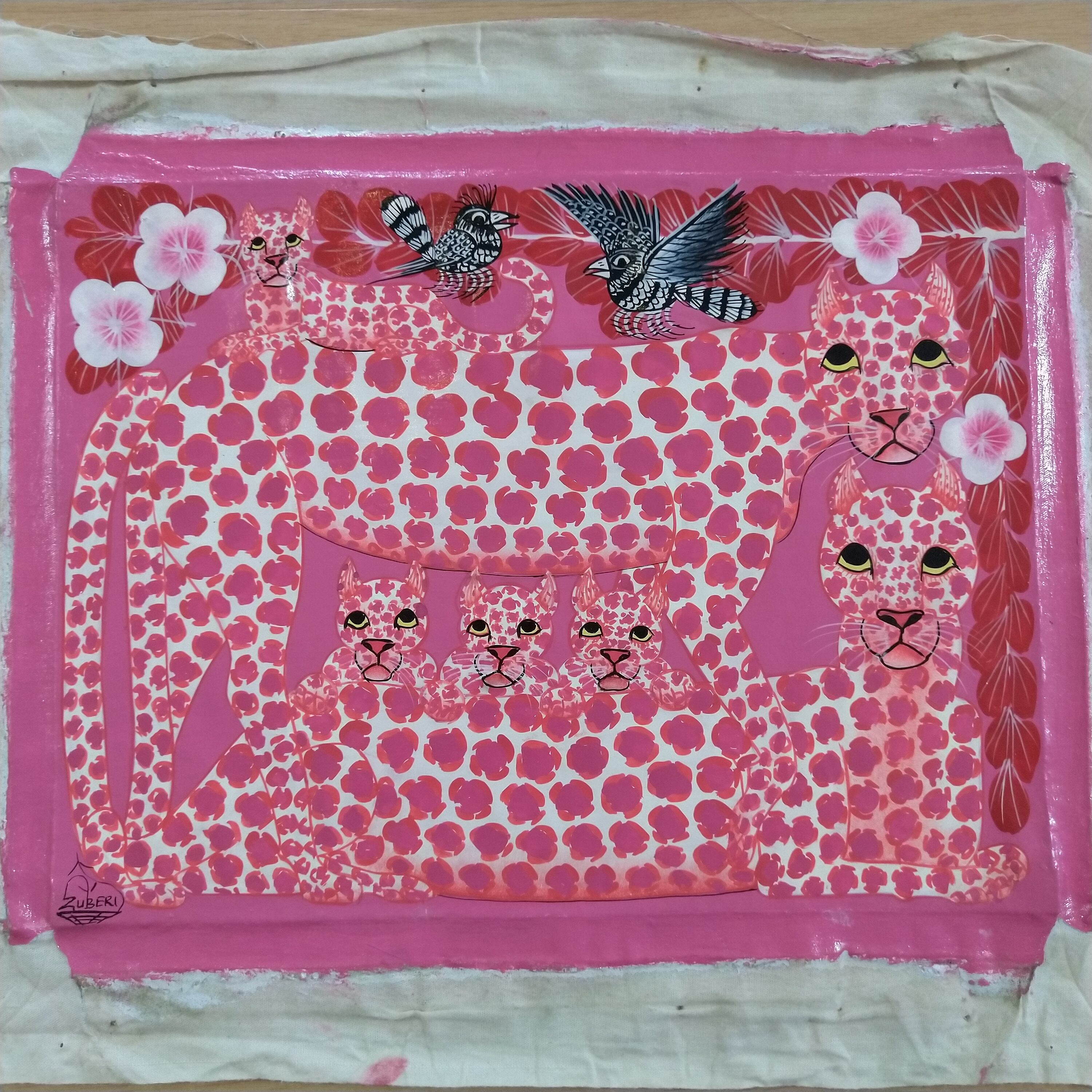 ★専用商品④『 Pink Leopard family 』Medium-Tingatinga by Zuberi 30*40cm