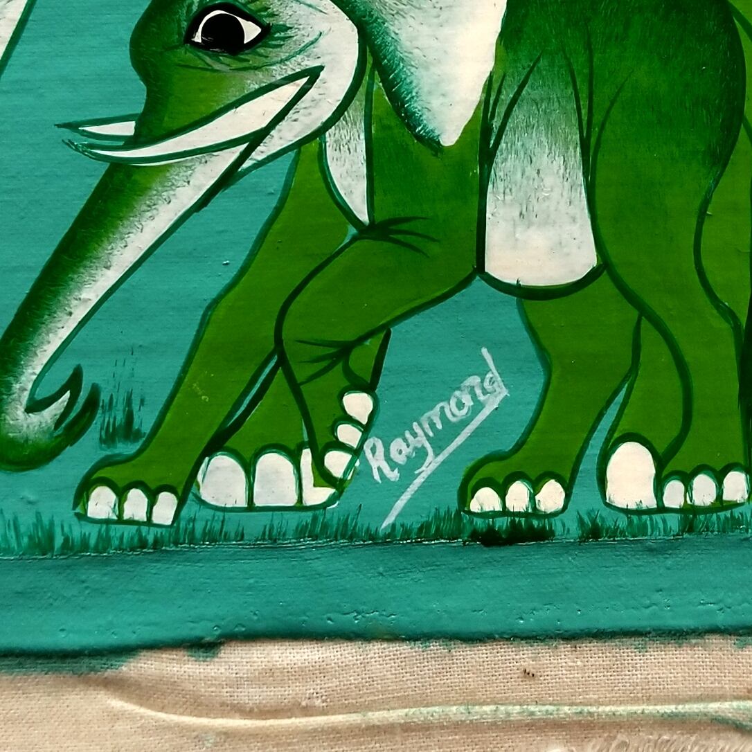 『 Tembo family 』Small-Tingatinga by Raymond 20*20cm