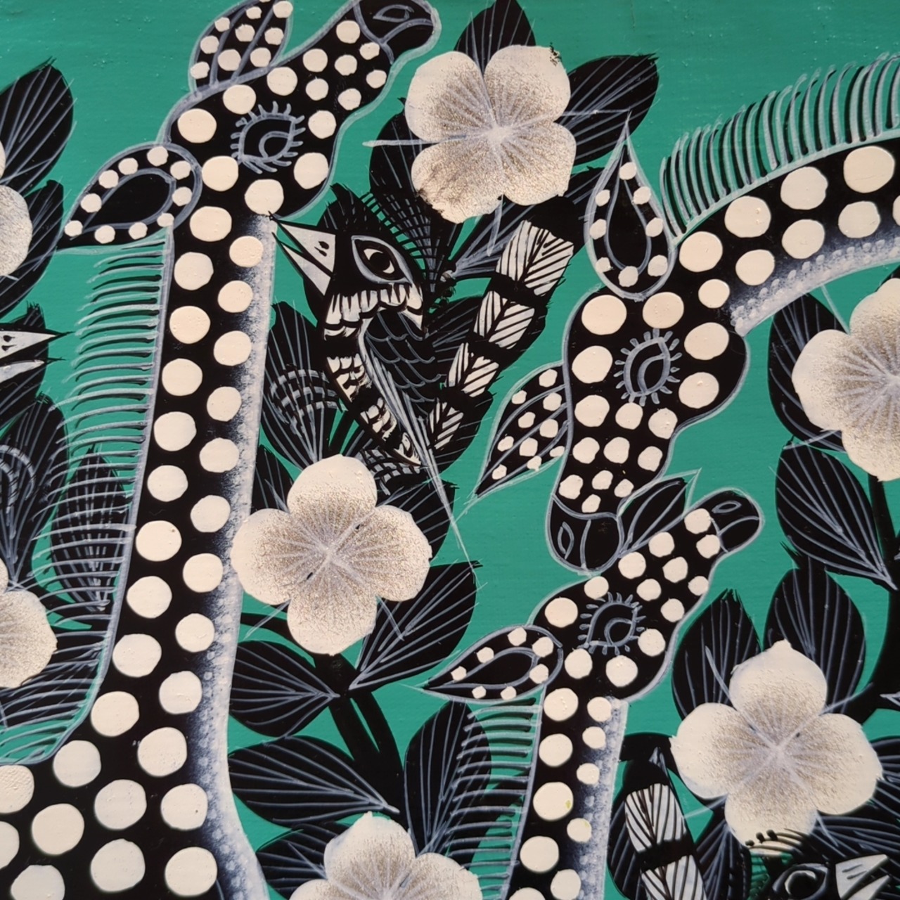 東アフリカ、タンザニアのポップアートです。主にアフリカの動物や植物、人々や風景、精霊などがモチーフとなり、エナメルペンキで描かれています。名前は創始者のエドワード・サイディ・ティンガティンガの名に因んでいます。