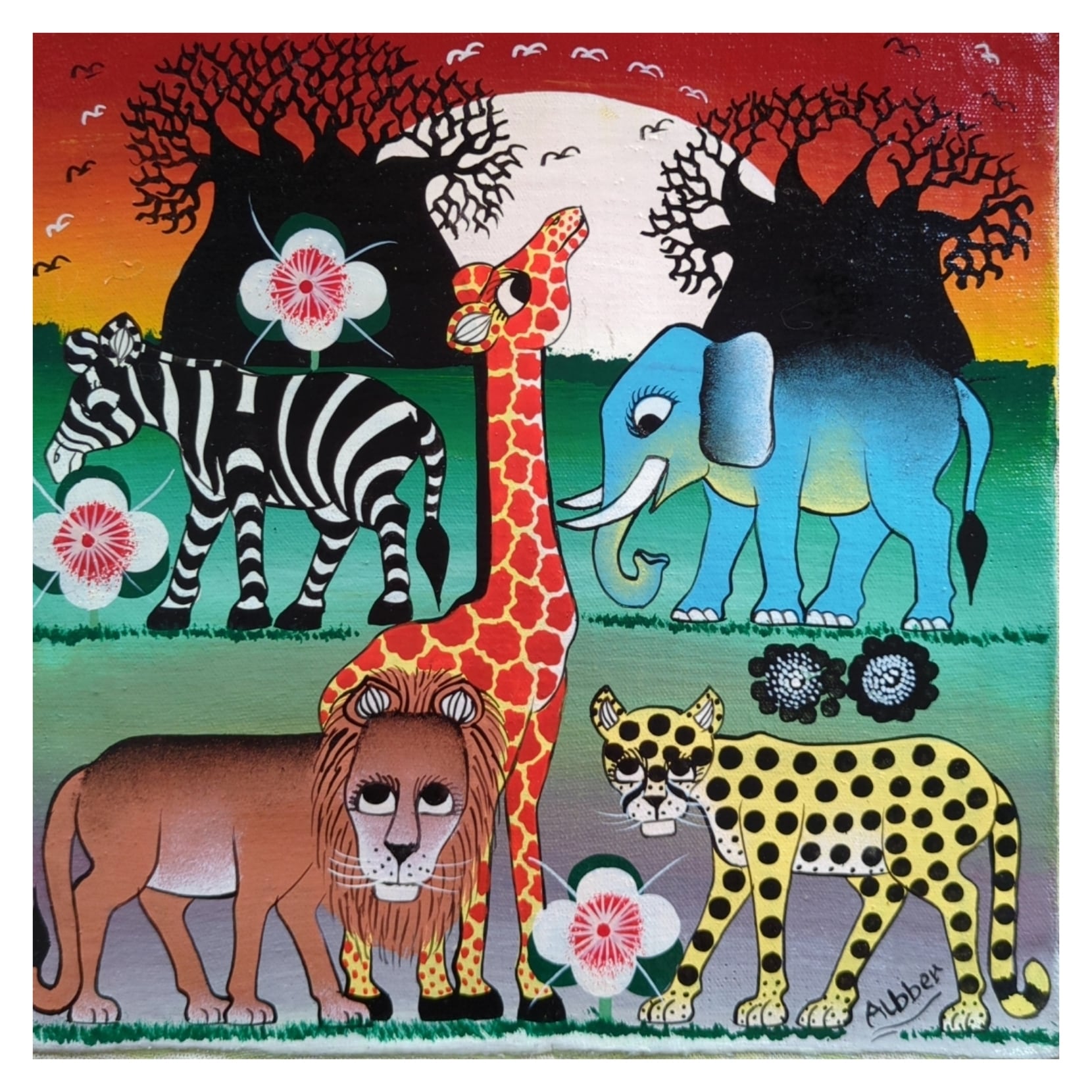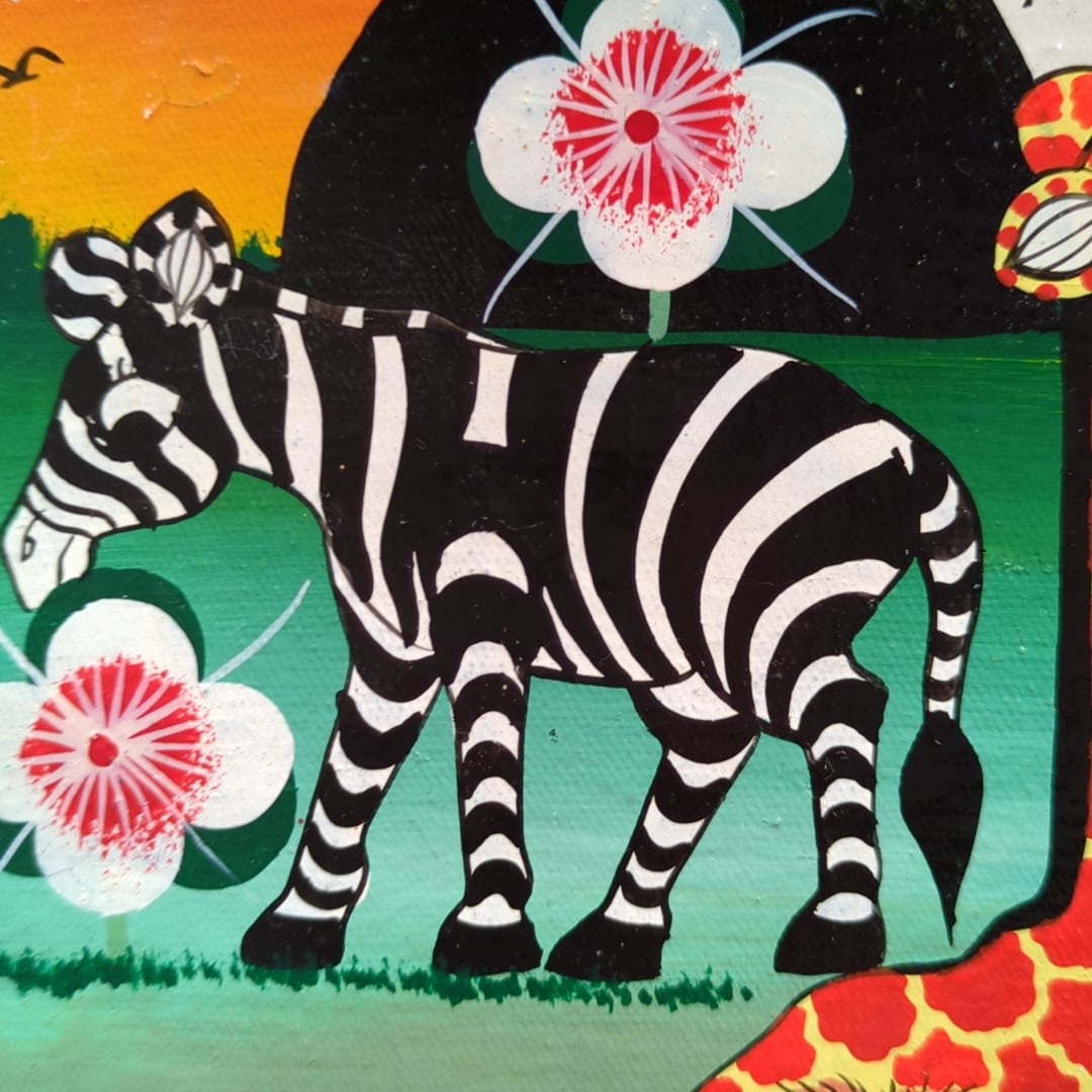 東アフリカ、タンザニアのポップアートです。主にアフリカの動物や植物、人々や風景、精霊などがモチーフとなり、エナメルペンキで描かれています。名前は創始者のエドワード・サイディ・ティンガティンガの名に因んでいます。